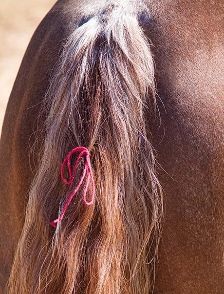 If you were ever in 4-H, Pony Club or belonged to any sort of riding group, you’ve probably heard of putting a red ribbon in the tail of a horse that kicks. The red ribbon lets all the other riders know that your horse will kick if another horse comes up near him. To me, a red ribbon in a horse’s tail is just a bogus excuse for a lazy owner who wants to take no responsibility for his horse’s training. A red ribbon says, “I know my horse kicks, but I don’t want to do anything about it. So I’m going to make an excuse and warn everybody that if you come near me, my horse is going to kick you and I’ll say, ‘I told you so!’” That doesn’t cut it with me. We each need to be responsible for our own horse’s actions.