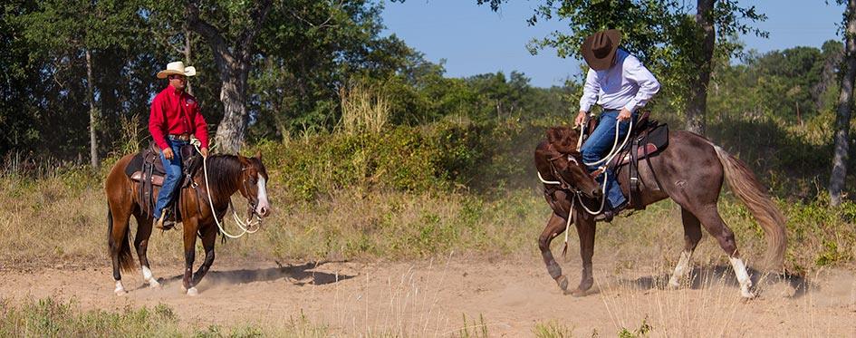 So why would a horse pin his ears or kick at others? It may be due to a lack of respect. Maybe you never taught your horse to respect you, or you’re not giving him enough to think about when you’re riding. As a result, he has time to cause trouble and worry about keeping other horses out of his personal space. When it comes to training horses and working with them on a daily basis, I figure the horse has 23 hours a day to do whatever he wants—eat, sleep, play, whatever. I only ask for an hour or two out of his day, and the least he can do is put on a good attitude and respect me while I’m with him. I make no excuses for cranky attitudes in my horses, whether the horse in question is a mare in heat or an extremely dominant horse in the herd. When I’m riding my horses, their attention and focus had better be on me.