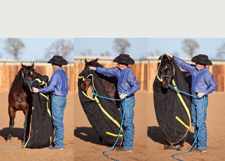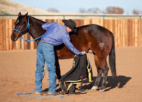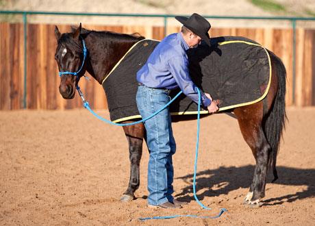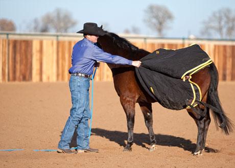 As a horse owner, your job is to teach your horse to use the thinking side of his brain and desensitize him to as many objects that move and make a noise as possible—and blankets are a perfect example.