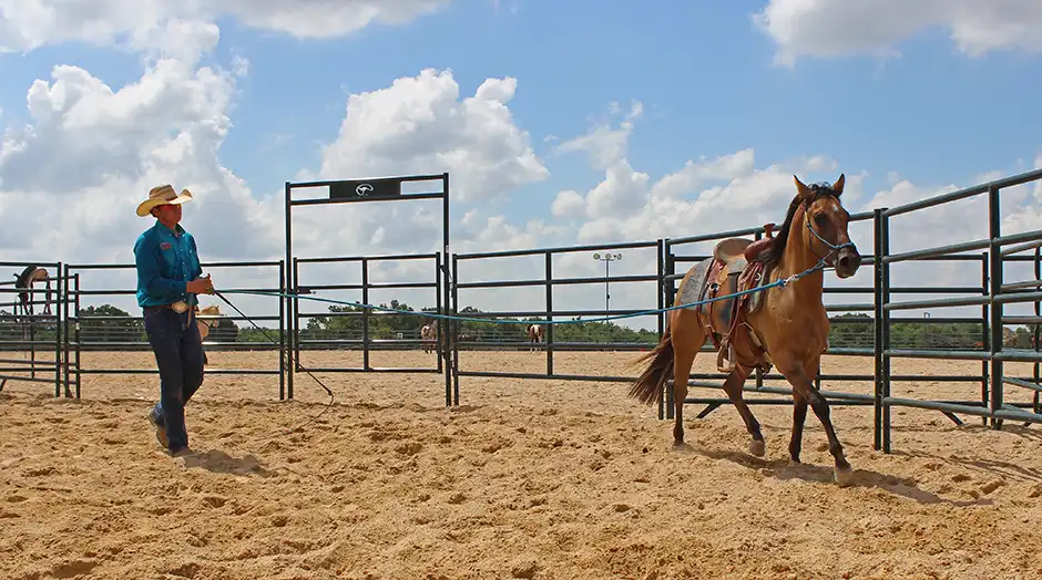 That’s why, after I saddle a horse in the roundpen and get him comfortable moving at the trot and canter with it, I turn him out in a safe area to move around in. I want a horse to get so comfortable with the saddle that he thinks it’s just another part of his body.