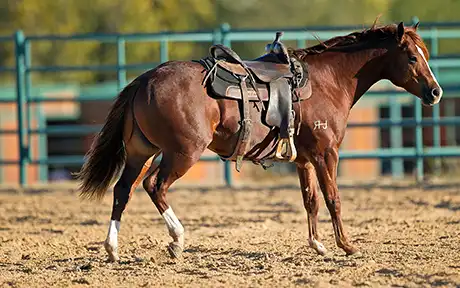 The key to successfully saddling a horse for the first time is to get his feet moving forward and to give him time to get comfortable wearing the saddle. After you’ve worked the colt, keep the saddle on him and turn him out in the arena or another safe area to let him wear the saddle for six to eight hours. You have to turn him out in an area that’s fairly large so that he has room to move his feet. A roundpen is too small. What usually happens is the colt will run around bucking and then he’ll settle down. Then all of a sudden the stirrup will touch his side and he’ll take off bucking again. Then he’ll relax and fall asleep, and when he wakes up he’ll see the saddle on his back and take off snorting and bucking again. You’ve got to give him the opportunity to try and get rid of the saddle and realize he can’t. If all of a sudden the colt grew a mane and tail, he’d be just as frightened of them. But because he was born with his mane and tail and has had his whole life to get used to them, he’s not frightened of them. You have to let him wear the saddle long enough so that it just becomes second nature to him.